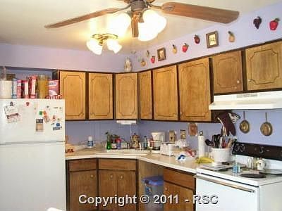 New roof in 09 * Newer carpet * Newer vinyl windows * Newer furnace & hot water heater * Newer vinyl floor in kitchen * Newer vanity & vinyl floor in hall bathroom * Ceiling fans throughout * Oversized 1 car garage with newer door & opener * Large storage shed in back yard with electrical * Fenced rear yard with concrete patio. Call 719-362-5555 & enter ext 1007 for 24 hour recorded info.