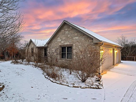 Experience the perfect blend of tranquility and luxury in this sprawling ranch home nestled on 10.4 acres. This 4-bed, 3-full-bath home boasts a host of features, making it a haven for both relaxation and recreation. The heart of this home is the gourmet kitchen featuring custom cabinets, a large island, granite countertops, & double ovens—a culinary enthusiast's dream. Great room boost beautiful floors, stone fireplace & cathedral ceilings with natural wood. The main floor master suite offering massive closets, a double vanity, and a spacious garden tub for a touch of luxury. The finished lower level features a full bath, an additional bedroom, and a recreational area with a walk-out to a large oversized patio. Outside the home offers a large vaulted screened porch, 40x30 outbuilding, newer shed, a convenient chicken coop, and an oversized 3-car garage with dedicated workshop space with convenient side entry. Are you ready to make this charming ranch home your own oasis? Additional Rooms: Sun Room