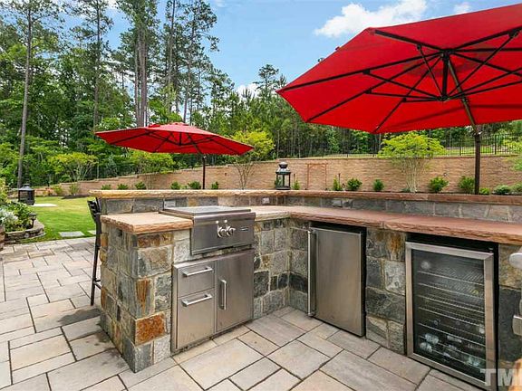 This GORGEOUS Cul-de-sac LUXURY home in West Cary's Piazza at Stonewater by CalAtlantic Homes sits on nearly a 1/2-acre private backyard w/outdoor kitchen overlooking woods.The spacious design is flowing & open w/a FIRST FL MASTER SUITE complete with a luxurious spa-style bath & oversized shower; walk-in closet with built-ins; FIRST Fl GUEST ensuite; Masterpiece designer Kitchen - 6-gas Burner w/grill Rangetop, wall oven, QUARTZ counters, Media rm, Gym, Steps from Tobacco Trail. 2 Tankless WH's.