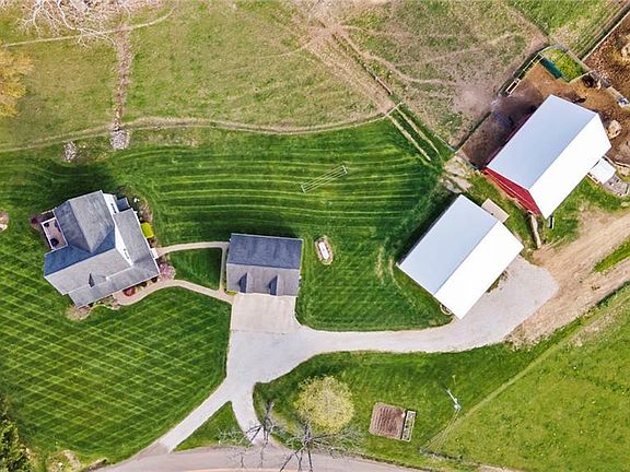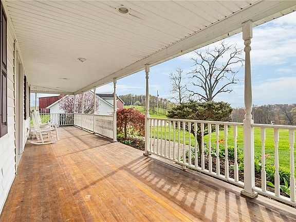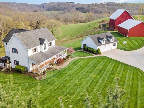 Enjoy life in the country, away from the hustle and bustle, when you move into this beautiful 4BD, 2BA, custom built home with a gorgeous wrap around front porch, situated on 20.6 picturesque acres. Youll enjoy a warm welcome when you feel the heated tile floor in the mudroom! From there youll enter into a big, open, eat-in kitchen with Kraftmaid cabinets, under cabinet lighting, lots of counter space, appliances, and 3/4 hardwood floors which continue on into the formal dining room which is currently a den. Very large and lovely living room with lots of windows and a gorgeous solid wood staircase. Home office is great for those who work from home or students with homework. First floor laundry with full bathroom and tiled floors. Solid 6 panel doors throughout the house. Upstairs youll love the unique layout, the gorgeous front window seat area, 4 bedrooms and 1 spacious, full bathroom. Large master with 2 walk in closets (one currently used for storage). Full walk out basement. Outside youll find a 28x36 detached, heated garage, with hot&cold water. Outdoor woodburner heats the house when you dont want to use the propane furnace. 40x60 shop with cemented floor and work benches. 45x40 bank barn has a newer metal roof, 4 stalls for cows or horses, 3 hog bays, & cooler room for show cows. Upstairs of barn is heavy enough for wagons & tractors. Outdoor wash bay for show cows. Magnificent property!