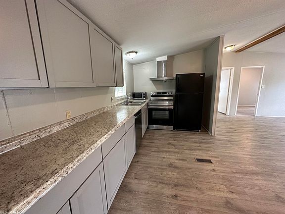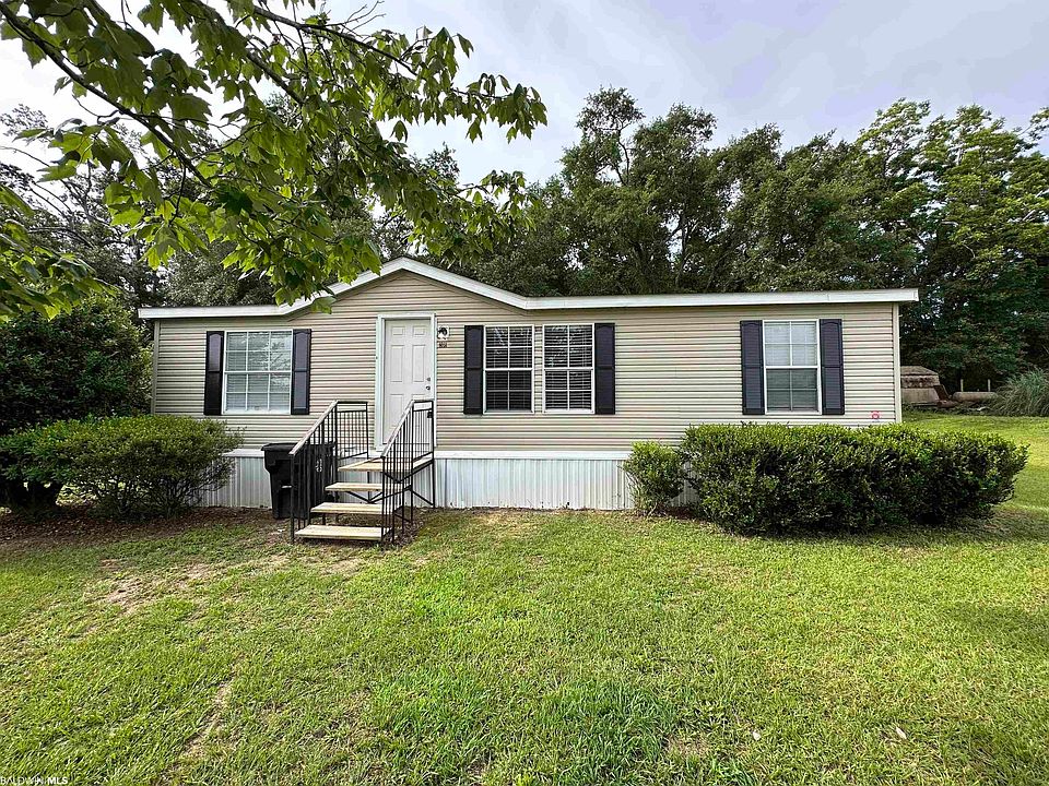 This property is centrally located, offering easy access to major county destinations such as the beach, Tanger Outlet Mall, OWA, 1-10. Conveniently close to the elementary and high school. Nestled in a quiet cul-de-sac, boasts a generously-sized lot, complete with a beautiful oak tree that provides natural shade. Recently remodeled in 2021 with:new roof, cabinets, countertops, floors, exterior a/c compressor, a/c fan motor on the air handler, floors, stove, hood vent. 2023 updates include new fridge, fresh paint throughout, new tub surrounds. The open-concept living area is perfect for entertaining, and the split floor plan ensures maximum privacy. Although there are a few minor repairs needed, such as additional support for the back deck and some damaged flooring in the pantry, this property should not be missed. Mobile home is a 1999 Redmon. Fridge in listing pictures does not convey.