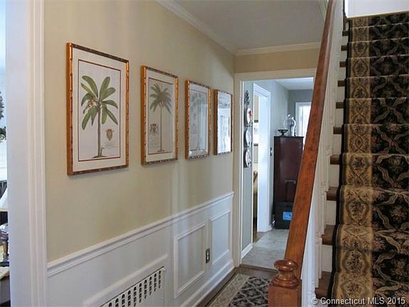Space abounds across this home and yard with room to stretch out and grow! One of the more private properties in the Spring Glen neighborhood of Hamden. This property, at .65 acres, is twice as large as most lots in the area with woods on almost three sides to add to the quiet of its cul-de-sac position. Eat-in kitchen is next to the half batch and has a pantry. Double French doors open the kitchen to a family room with separate zoned heating to warm up on cold winter nights. Living room with fireplace feature two double French doors to a heated and cooled sunroom. The sunroom accesses a large patio – more on that later. Traditional dining room features two glass-doored corner hutches that exemplify the nice wood finishes throughout. These finishes include wainscoting, crown molding, and two closets in the family room. Main floor rounded out with one-car garage accessing the kitchen through an enclosed mud-room. New asphalt driveway in 2016. Master bedroom fits a king bed with plenty of space to spare and comes with ample storage. Updated full bath upstairs. Second bedroom large enough for queen bed plus a 3rd bedroom / office. Space to stretch out…this house boasts a 1000 square foot patio full of features: in-ground pool with brand new heater, pergola, heated outdoor shower, new pool safety fence with magna-latch gate, a double shed with electricity and a pool toy rack. Brand new privacy fence surrounds the top yard and chain link fence on the bottom seal off this nice property for you and yours. Space to grow into…this house offers storage space equal to living space…equal. Almost 800 square feet of space in each the attic and basement – both served by full staircases. Lastly, the grounds are landscaped front, back and around including large yard, gazebo, and maintained woods.