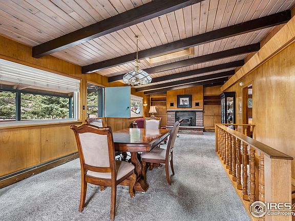 This charming three-bedroom, two bath home sits on a private .96-acre lot next to open space. An amazing find in the coveted Big Elk Meadows Community which is surrounded by national forest. The upstairs open concept dining room and living room has vaulted ceilings and skylights that lead out to a huge deck, perfect for grilling, entertaining and enjoying breathtaking views of the mountains, meadows, grazing elk and wandering turkeys. The updated kitchen has newer stainless-steel appliances including an Electrolux gas range, Frigidaire over-the-range microwave and Kitchen Aid dishwasher. The large primary bedroom located on the upper level has a sizeable walk-in closet and private deck. The refreshed lower level has two beautiful bedrooms with large closets, laundry, bath, and oversized family room/game room. You will find ample storage throughout this home and two wood burning fireplaces located in both the large living room upstairs and the oversized family room/game room downstairs. Meander along the creek on the edge of the property where you may enjoy summer breezes, rock outcroppings and a grove of Aspens. Halfway between Estes Park and Lyons, follow the Little Thompson River up the fully maintained roads and pass two community lakes to reach this home. Enjoy the many amenities or activities within the community such as fishing, hunting, boating, hiking, snowshoeing, cross country skiing, heated swimming pool, youth park, tennis courts, sand volleyball court and horseshoe pit. Fish in the five trout-stocked lakes and keep your horses in the upper pasture which overlooks Longs Peak Mountain. With wildlife such as elk, deer, moose, turkeys, bobcats, bald eagles, and osprey in and around the community and the numerous recreational sports at your fingertips, this is Colorado, Rocky Mountain living at its best and it's right outside of your door!