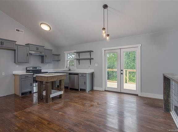 LIVE/WORK, HIP Modern Rustic West Asheville Ranch with a GREAT Potential STUDIO SPACE!!! NOW: $267K and ONLY 14 min to downtown Asheville!!! EXPERIENCE this HAPPY HOME w/a CONTEMPORARY FLAIR!!! You can MOVE RIGHT IN with NEW siding, NEW HEAT/AC, WINDOWS & ROOF, kitchen cabinets, solid surface countertops, oven/range, exhaust and dishwasher!! Ample ways to place your furniture in the spacious common level living areas w/refinished wood floors, vaulted ceilings & exposed Oak Beams! Get EXCITED & see the FUN custom tile in the 2 full bathrooms, kitchen island w/unique handmade Nicaraguan tiles & rustic sliding barn doors and cedar gable that accent this West AVL Gem!! Besides the 2 BR's on the main, you will be delighted to discover the BONUS MASTER ENSUITE in the daylight walk-out basement with single car garage. Enjoy PLAYING, GARDENING and RELAXING in the 0.41 acre yard or spacious deck WHERE YOU CAN still catch a glimpse of the Long Range (winter) Mountain Views!!