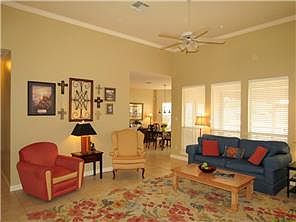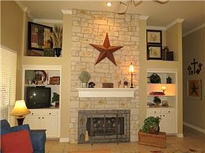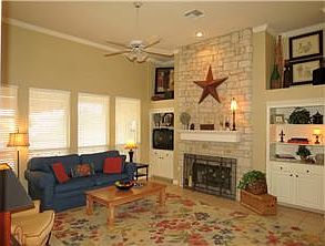 True Pottery Barn feel in this amazing 1 story stone home in popular Wood Ranch! 3 bedrooms + Office! Great floorplan with open living/kitchen/breakfast and MIL plan. Nice built-in shelves in living & hallway as well as beautiful stone fireplace & stone around breakfast bar. Updated vanities & lighting in master bath along with jetted garden tub and separate shower. Wonderful kitchen with updated stainless double oven and microwave. HUGE deck with partial arbor cover & covered patio in back.