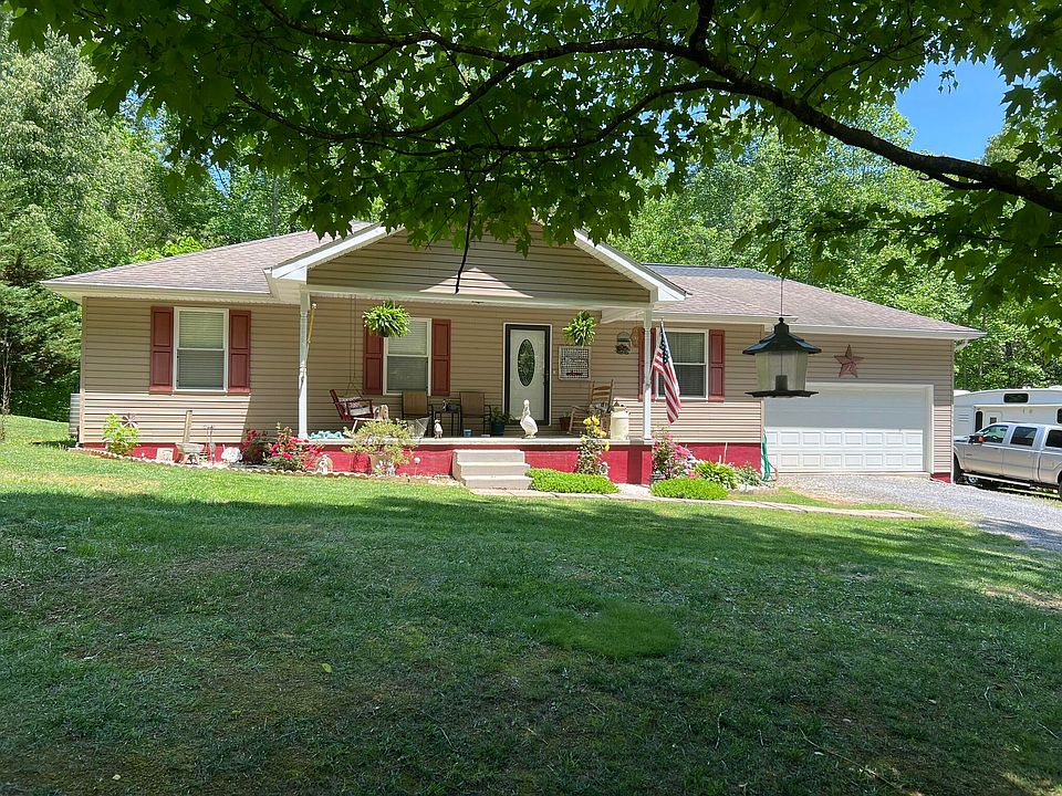 Imagine starting your day with a cup of coffee on the covered front porch or covered back porch/deck, soaking in the beautiful views of the surrounding landscape and sounds of nature. The seasonal stream that runs behind the home adds a touch of natural beauty and tranquility to the outdoor space. Whether you are enjoying a leisurely stroll along the stream or simply unwinding in the peaceful surroundings, this property offers a truly idyllic retreat.