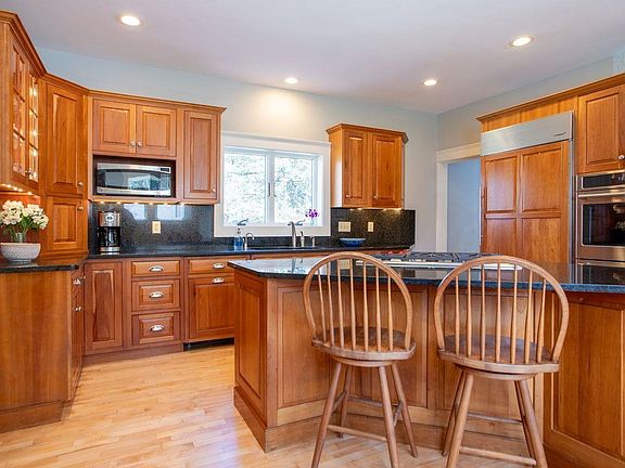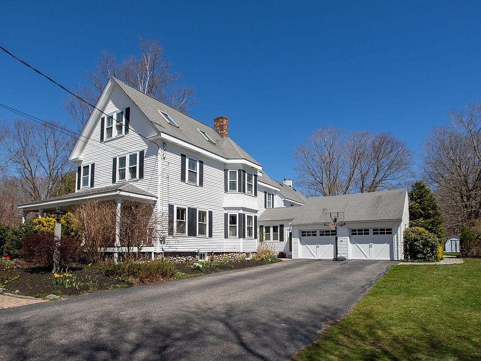New Englander residence on a large corner lot just a quick bike ride to the beach, town forest, recreation center and all the seacoast has to offer. Classic moldings, high ceilings, warm hardwood floors and numerous built-ins set the tone for this beautiful interior. Terrific kitchen features granite counters, a center island with seating, high end appliances, a large pantry plus a gas fireplace. Off the kitchen, enjoy the sun filled comfortable family room with glass sliders to the deck and outside pool area. Main level floorplan consists of formal and informal spaces including a formal living room, dining room, den, mudroom and ½ bath. Upstairs, accessible by 1 of 2 staircases, retreat to the primary bedroom suite with 2 closets, double pedestal sinks, a soaking tub and shower. 3 additional bedrooms, 2 baths and convenient laundry area complete the 2nd level. 3rd floor great room or guest suite offers many living options with cathedral ceiling, exposed beams and ¾ bath. Fabulous outdoor space includes an in-ground pool, deck, hot tub, patio, outdoor shower plus a barn for storage. 2 car attached garage, full basement, central A/C, irrigation and security system. Relax on the idyllic front covered porch throughout the year. A wonderful property to call home!