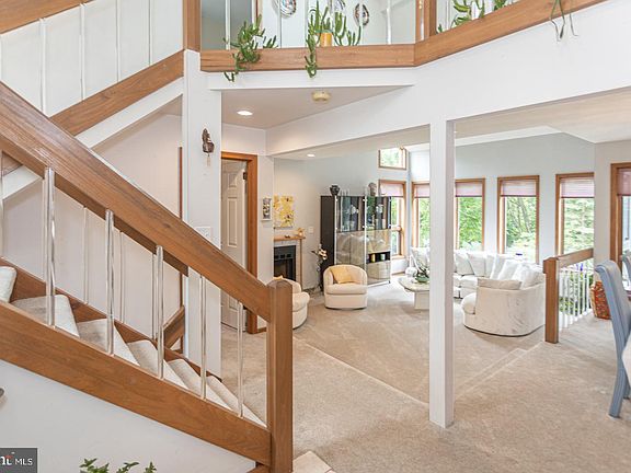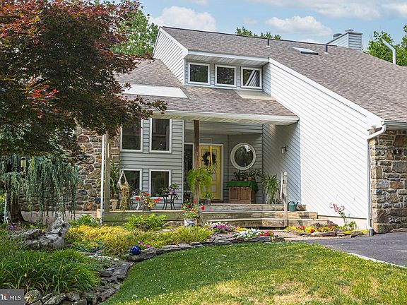 Vacation from home in this custom built Chalfont contemporary Home. Surrounded by nature, this serene 1.3 acre property offers terraced rock gardens, wildflower beds, and level lawn backing to tall trees. The 3 bedroom, 2.5 bath home complements the natural setting with an exterior of stone accents. The first floor is stylish and bright with natural light from the many windows. The wood burning fireplace is a focal point in the living room and can be enjoyed by the adjacent dining area. A three season room provides an additional dining destination. Versatile first floor home office or bedroom. Recently remodeled, the kitchen has gorgeous quartz countertops and a spacious island with cooktop and additional seating. The breakfast nook offers a second wood burning fireplace and is open to the family room. Glass doors provide access to the wrap around deck and inground pool. Conveniently located laundry and powder room. The second floor primary suite is spacious, offering views of the backyard from the balcony. Generously sized ensuite bath and walk-in closet. Two additional bedrooms share a large hall bath. The expansive lower level offers opportunity for a second family room, playroom or rec room and provides access to the backyard. A cozy propane stove adds to the ambiance. Two car attached garage with interior access. Newer improvements include roof, water heater, heating and cooling systems. Located in the center of Bucks County, minutes to shopping, vineyards, and commuting routes.