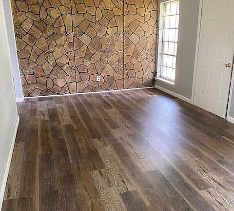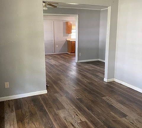 Lots of sq footage for the money! 4 br, 2 ba freshly redone with weathered wood-look laminant flooring and new bathroom on a deadend street for privacy. Some things that make this home desirable is that the master is very large and has a deck for your morning coffee, 2 spacious closets and a large master bathroom, 2 dining areas, & covered patio. Check it out!