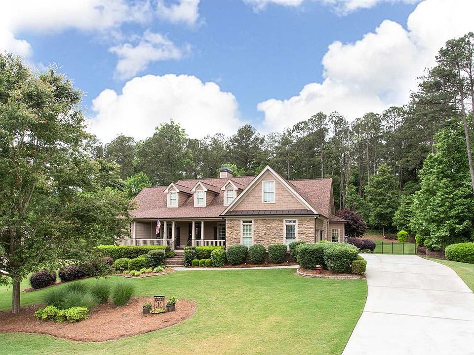 Breathtaking Executive style home! Located in highly sought after neighborhood. Craftsmen ranch style home w/gorgeous entryway, hardwood floors & formal dining room. Full kitchen w/view to keeping room w/fireplace. Large family room w/built-in shelves & fireplace. Huge Master Suite w/Garden tub & separate vanities. Teen Suite upstairs w/bath. Home office w/french doors & built-ins. Full finished Basement. Huge Rocking chair front porch. Backyard dream w/custom saltwater heated pool & hot tub w/entertaining space. 1.76 wooded acres. Loganville schools.