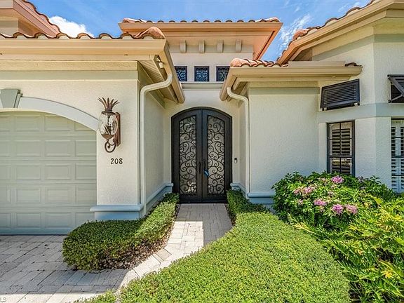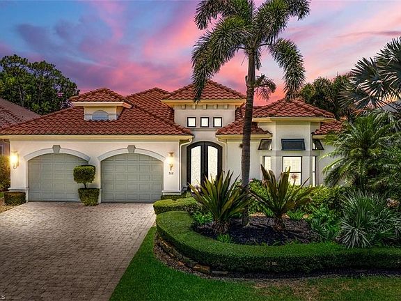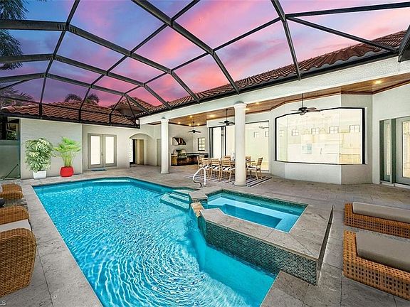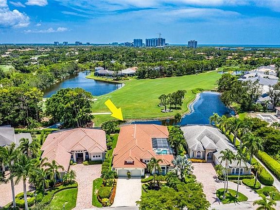 The finest in indoor/outdoor living w/golf & lake views. This updated, sophisticated yet casual home, has 2 lanais (S+W exposures), 3BD + 3.5 BA. Light & bright w/volume ceilings & transom windows, the home has a LR/DR room combination w/two wine coolers & custom cabinets. The kitchen is a chef’s dream w/large center island & first-class appliances. The generously sized primary suite is big on style w/wood floors, built-in desk & bath w/tub/lux shower + large walk-in closet. The 2nd bdrm can serve as an office or guest suite, w/built-in desk/shelving & 2 Murphy beds. The ensuite bathroom is updated as are all the baths. A guest cabana off the lanai has a bedrm, bath & breakfast bar w/refrigerator drawer. The west-facing & sun-filled courtyard lanai has an updated pool/spa, generous seating & sunning areas w/shell stone pavers. A tongue-and-groove wood ceiling accents the covered space, which includes an outdoor kitchen w/Viking grill & refrigerator. This "smart" home remotely controls lights, pool/spa, music & security system with cameras. All this + new roof in 2020. Audubon is west of 41 & has great golf, tennis, pickle ball, dining & more. IMMEDIATE GOLF MEMBERSHIP AVAILABLE.