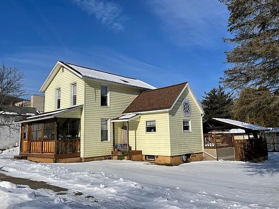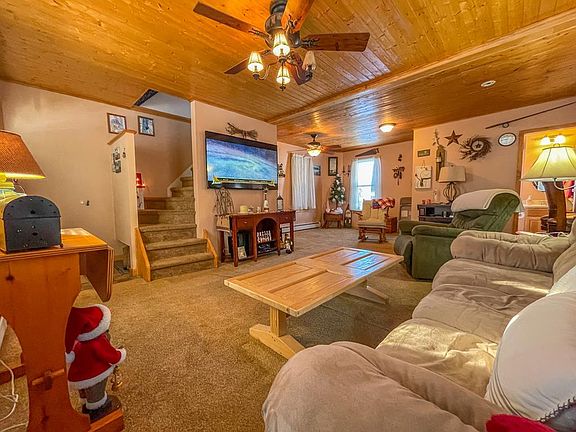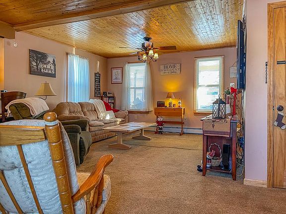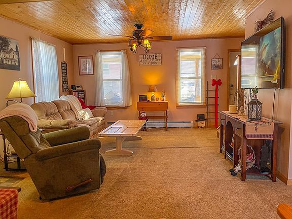 Charming in-town property with lots of fabulous updates!!! The kitchen offers stainless steel appliances, corian counter-tops, and a pass-through bar giving the layout a nice open feel to a large living room, dining area, and half bathroom. Access the deck and large covered patio area directly from the kitchen. This is a wonderful outside entertaining space with included hot tub! Upstairs you will find 2 bedrooms, and a large full bathroom with laundry area. This home sits on 2.5 lots offering an excellent level yard which is mostly fenced. Updated light fixtures, newer flooring, roof, and boiler! This home is move-in ready and being offered at an affordable price!