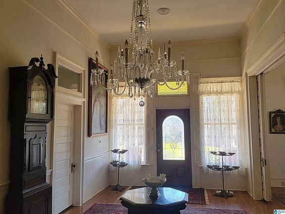 Welcome to this charming Victorian home located in downtown Roanoke, Alabama! This beautiful home of approximately 2,656 sq. ft. is ready for a new owner.  Entering the home from the huge classic wrap around porch into the beautiful spacious foyer with 14’ high ceilings, tall windows with beautiful hardwood floors.  Six beautiful custom fireplaces throughout the home. Large living room with huge pocket doors and a beautiful fireplace and mantel. The formal dining room features a butler’s pantry and lots of custom wainscoting panels.  Kitchen with all the appliances including refrigerator with a bonus separate dining room with fireplace. The home features 4 bedrooms and two full bathrooms, an oversized master bedroom and bathroom and separate laundry room. Outside features include several mature trees, a storage building and fenced-in area in backyard. Call today to view this wonderful home.