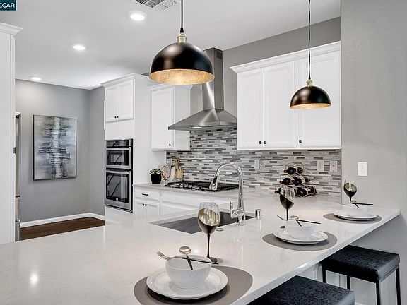 Amazing newer home in the Tice Valley area of Walnut Creek, situated on a preferred end lot within the Trellis Development in front of the lush community garden. Spacious, open floor plan boasts tall ceilings, recessed lighting and open flow to the dining area.The modern kitchen features a large peninsula with seating, sleek quartz countertops, glass tile backsplash, gas cooktop and stainless steel appliances creating the perfect layout for hosting and entertaining. Enjoy sliding glass doors to a private side yard and turf. Off the kitchen find a bonus area perfect as an office, and a conveniently located half bath downstairs. Upstairs find a large primary suite with balcony, ensuite spa-like bath with his-and-her vanities, soaking tub, walk-in shower & an expansive walk-in closet. Find 2 additional bedrooms generous in size, a jack-and-jill hall bath with dual sinks & a laundry room.The community offers an onsite playground & stunning shared community garden. Centrally located in between Alamo, downtown Walnut Creek, & Lafayette. Walkable Tice Valley park, minutes to shopping, freeways, BART & top rated K-12 schools.