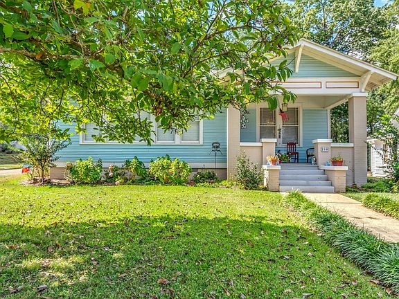 The home has unique architectural details, craftsmanship, and a sense of history that sets it apart. Some of the features are intricate moldings, trim, and woodwork, along with beautiful interior glass doors. Original hardwood floors and built-in cabinets with glass doors in the butlers pantry are an added plus off the kitchen. The kitchen has lots of cabinets with all kitchen appliances to remain with the home. Just off the kitchen is a beautiful dining room large enough for a table to seat 10. There are 3 bedrooms, and 2 baths, with a claw foot tub in the guest bath. The great room is very spacious with a fireplace and large windows. The home features a wide hallway through the middle of the house and has 12 ft ceilings. The home sits on a corner lot with a large front porch. The yard is landscaped and has a fenced backyard and a nice outside storage building with power. Shown by appointment to qualified buyers. An additional $2,500 is being offered to the selling agent.