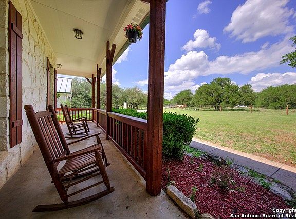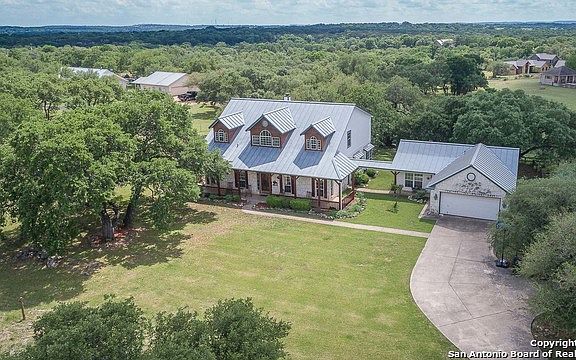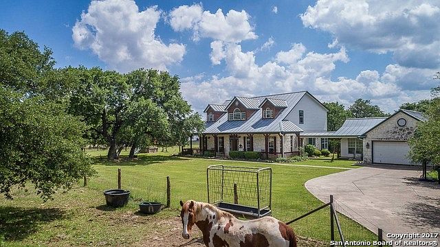 Minutes from downtown Boerne, Iconic Hill Country style on 3.6+horse friendly acres awaits you! Stone exterior, metal roof, big front porch welcomes you in with gleaming hardwood floors. Classic floor plan-formal dining with prep area flows into kitchen, breakfast adjoining large living with fireplace. Private master suite down with nice bath. Central gameroom/loft up w/secondary bedrooms & baths.Separate Guest house. Outside property is fenced/cross fenced with pole barn, arena and pasture area for horses.