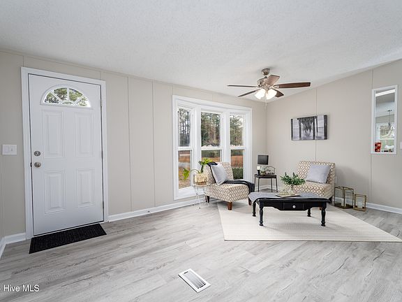 Better hurry, as this one shouldn't last long! Recently renovated home offers 3 bedrooms plus an office or bonus room on almost an acre lot. Some of the new renovations include: some windows, exterior doors, storm door, all interior and exterior lighting, lvp flooring, carpeting, vanities, mirrors, showers, to name of few. You will love to relax in one of the 3 freshly stained decks. Enter the home and you will be thrilled to have not one but two living areas! The bright and spacious kitchen includes skylights, freshly painted cabinets with new hardware, appliances and butcher block countertops that has a pass through window to the family room with the fireplace. Through the new sliding glass doors you can relax on the back deck overlooking the large wooded backyard. A nice sized dining room off the kitchen and family room is perfect for all of your meals! The laundry room is located between the family room and large owner's suite that features a luxurious stand alone soaking tub, dual vanities and a separate shower. On the other side of the house you will find 2 additional bedrooms, as well as an office/bonus room and a guest bathroom. This home is located close to the area beaches, Marsoc and Camp Lejeune back gate. Hurry and call today to schedule your tour!