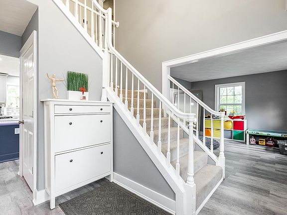 This Updated 5-Bedroom/4-Bath Home offers plenty of privacy, with 2 Large decks overlooking a peaceful wooded yard. The Main Level of the home has a "NEW HOME" feel with an OPEN FLOORPLAN, all NEW Luxury Vinyl Plank Flooring, Bay Window and a Window Bench Seat. The completely UPDATED KITCHEN boasts NEW Quartz Countertops, NEW Gorgeous backsplash, NEW 42" Cabinets, large ISLAND w/seating, Farm Sink, 3 Pantries, PLUS Stainless Appliances including a DOUBLE OVEN! The Kitchen is Open to the Breakfast Rm, Dining Rm, Living Rm and the 2-STORY Family Room with a Gas Fireplace -mounted TV Stays! The Large Master Bedroom has a cathedral ceiling, a private balcony, huge walk-in closet and a luxurious 5-piece master bath which includes a skylight and jacuzzi tub. The Walk-Out Lower level has a large Rec Room with wet bar station, Full Bath and 2 Generous Bedrooms (one of them with a Gas Fireplace)! Some extras include a KOI Pond in the backyard, whole house attic fan and some amazing neighbors!