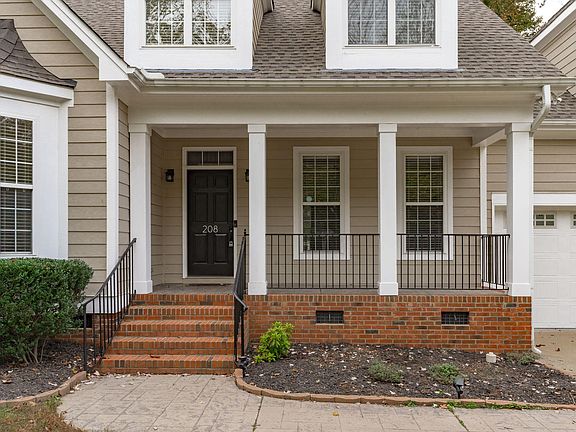 Welcome to 208 Cobblepoint Way in Holly Springs, NC! This impressive 3-bedroom, 2.5-bathroom home offers 2,614 square feet of beautifully updated living space with newly refinished hardwood floors and fresh paint throughout. The main level features a spacious primary suite with a 14-foot vaulted ceiling and a gourmet kitchen with Bosch appliances. A stunning custom-built 300 square foot sunroom leads to an extended grilling deck and dining patio, perfect for outdoor entertaining. Upstairs, find a loft office with custom built-ins and a large home theater bonus room with a dry bar and fridge. Access the impressive pool and amenities of nearby Sunset Ridge. Experience the best of Holly Springs living at 208 Cobblepoint Way—your perfect retreat awaits!