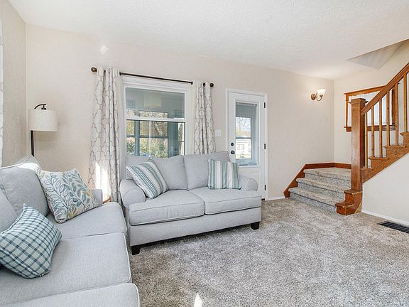 Adorable move in ready home in Plainwell. Main floor features charming enclosed front porch, fresh kitchen with all new appliances included, separate dining room with hardwood floors, living room with new carpet, bedroom currently used as an office and full bath. Open staircase leads to upper level that features 2 bedrooms and second full bath. Large basement area for storage including washer and dryer. Exterior features vinyl siding, attached oversized 1.5 car garage, patio off the back and an extra deep back yard. Many updates in last couple years include roof, all windows in house and front porch and kitchen/bath remodels. Reserved - Azalea in front yard.
