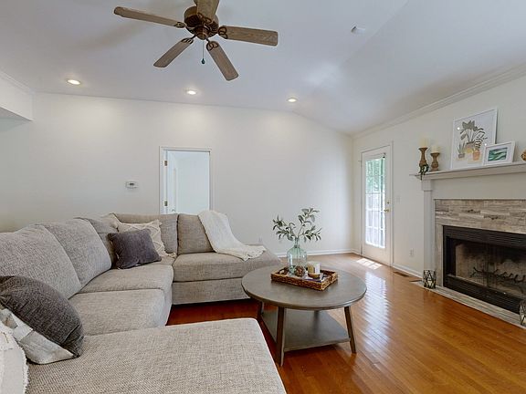 Welcome Home. This house sits on a dead-end street and feels private as it is surrounded by trees. Home is vacant and move in ready with tall ceilings in great room and open. Fresh landscaping, entire house has been painted, back deck painted, and house cleaned. House features hardwood floors, fireplace in living area, retractable electric blinds in kitchen, soft close toilet lids and fenced in private backyard. Roof is less than 4 years old!
