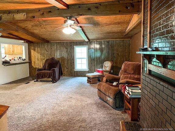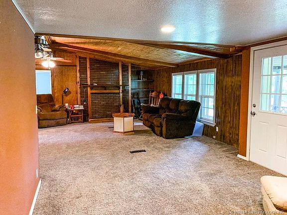 Lake Eufaula around the corner! Home has great square footage w/ 1800+ SQ FT, living area is large and could easily fit a dining room table, there is plenty of space! Kitchen is updated and has ample counter top space to get to cookin, the stove is gas with propane being on the property, and dishwasher also included! Master bed w/private bath w/ granite counter tops, double sinks and extra vanity! The floor plan is split and has large guest bedrooms! Large 2 car detached garage as well!