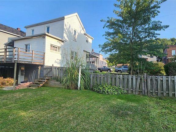 You should be impressed with the presentation of this Two Story, 3 bedroom home with detached 3 car garage on large double lot offers. The kitchen has oak cabinetry, exceptional counter/storage space and direct access onto elevated deck that overlooks your private yard. The 13x21 dining area gives you plenty of elbow room for family and holiday gatherings. All 3 upstairs bedrooms are comparable in size and the modernized bathroom with walk-in shower. This home has full basement ,great storage space and walkout access to back yard. Exterior of dwelling is vinyl sided, has replacement windows and newer roof. Those interested in a large garage, well here is a 3 bay ,clear span garage that is perfect for working and storage of all your precious belongings.