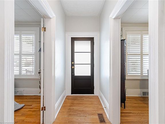 Previous Sale fell through, Absolutely charming, updated bungalow featuring 9 foot ceilings 2 spacious bedrooms and a 4-piece modern bath, offering the ideal blend of style and convenience and the benefits of modern comfort and effortless carpet free, single-level living in a central location. Step into the inviting front foyer, where a graceful hallway leads you into a spacious, centrally located living room and an elegant, family-sized formal dining room perfect for those who love to entertain. The home is beautifully finished with timeless vintage hardwood floors, adding a touch of classic charm throughout. The chef-inspired kitchen is a true standout, complete with sleek all-white cabinetry, matching appliances, and quartz countertops paired with an undermount sink, convenient pot drawers, a generous 6x3 pantry, striking glass subway tile backsplash and stylish track lighting all adding both functionality and a contemporary flair. Convenience abounds with a dedicated laundry/mud room that offers direct access to the basement and fenced backyard perfect for outdoor gatherings. Enjoy the extra storage in basement and the spacious yard complete with a large shed. Upgrades include a new electrical panel, fresh paint, and more!"