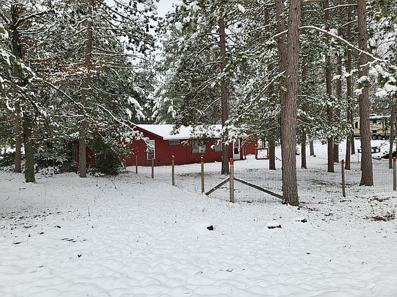Nicely situated on a secluded wooded corner lot you'll find this cute cabin just south of downtown Mio. Lots of nice updates! Bath, laundry area & the living room are a newer addition & has beautiful light natural knotty pine walls & cathedral ceilings! Other updates are new windows, beautiful vinyl plank floors thru-out most of the house. Extra flooring on site to finish the last room- 2nd bedroom/pass-thru, as seller is relocating out of state. Home is heated with natural gas (heater was removed for flooring installation but will be reinstalled), plus city sewer is a plus. Most of the front yard is fenced in, perfect for dogs. Quaint bunkhouse that can be made into a ''she-shed'' or to use as storage. Pass-thru room is used as a 2nd bedroom.This cabin comes completely furnished!