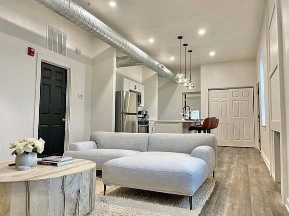 This fully furnished 1,500 square foot loft boasts stunning contemporary decor, a private balcony walk out and a central location to all of Pittsburgh's top attractions. Once a former hardware store, this luxurious newly renovated loft was designed with high ceilings, an open floor plan and ultimate comfort in mind. Short term leases available. Rent includes regular housekeeping services, utilities, wifi and complimentary toiletries. - The space - Start your day with a coffee on the balcony. Or stroll down main street to the Waterfront, an open-air shopping center home to a vibrant collection of stores, restaurants, entertainment, & community events situated on the Monongahela River. The neighborhood is a fusion of galleries, restaurants, and live music central to all of Pittsburgh's top attractions. - Contact-free check-in - Super-fast WiFi - Smart TVs in each room - Fresh towels and bathroom essentials - Fully equipped kitchen - What's nearby - - 1 minute walk to Dorothy 6 (we recommend the french toast at Sunday brunch) - 2 minute walk to Voodoo Brewery (award winning gastropub with a large selection of craft beer) - 8 minute drive to Kennywood (Pittsburgh's favorite amusement park) - City attractions - - 9 minute drive to Carnegie Mellon University - 10 minute drive to the University of Pittsburgh - 11 minute drive to Acrisure Stadium - 12 minute drive to PNC Park This loft is conveniently located in the heart of Homestead right across the street from the waterfront and is a super walkable area. Whether you are in the city visiting universities, museums, stadiums or simply want to experience it all this location is prime! - First bedroom - Relax into the night in the king sized top of the line Vibe mattress draped in Egyptian cotton sheets and a luxurious duvet. Relax and watch some Netflix on the 55" smart TV. There is also a large closet with plenty of hangers, and two plush bathrobes! - Second bedroom - Spacious and stylish! Enjoy a king size metal canopy bed featuring a super comfy king sized Vibe mattress with luxury Egyptian cotton sheets and duvet. The bedroom also has a 65" smart TV. The walk-in closet has plenty of space and hangers for your clothing, and has two plush bathrobes to use during your stay! - Additional beds - The loft can sleep up to 6 people comfortably thanks to the 2 twin sized roll out beds provided. - Living room - A great space for unwinding. There is a gorgeous Article sectional sofa complimented by a modern leather Wassily chair and plush West Elm wool rug. Relax while unwinding on the couch with the 70" LG Smart TV, loaded with all of your favorite subscription services and basic local channels. You can even stream to the TV directly from your smartphone! - Kitchen - The brand new kitchen is stocked with everything you'll need for cooking! Newly updated with high end finishes and fully equipped with a four burner stove, fridge, dishwasher, microwave, toaster, espresso machine/coffee maker, and tea station. An assortment of beverages are provided free of charge for you to enjoy during your stay! The kitchen is stocked with knives, plates, spoons, forks, and pots/pans. - Bathrooms - There are two full bathrooms stocked with premium spa-grade NEST New York organic shampoo, conditioner, and body wash, as well as a hair dryer, makeup wipes, cotton swabs and other necessities. - Balcony - Hangout and get some fresh air on the beautiful balcony. Features a love seat, patio table and chairs for you to chill out on and enjoy the warm weather! Cool views of the neighborhood architecture too. Overlooks a play area perfect for families traveling with small children. - Parking - There is a private off-street parking pad with ample space located right behind the loft for free. - Washer/Dryer - The loft features a washer and dryer with all detergent provided for your convenience. - Steps - The space requires you to walk up a flight of steps to reach the door upstairs, totaling 12 steps. - Guest access - You will have access to the entire loft. This is not a shared space. The loft is equipped with a brand new smart lock, so you will have convenient keyless access 24/7! - Other things to note - Pets allowed on case by case basis. All utilities + wifi included in rent