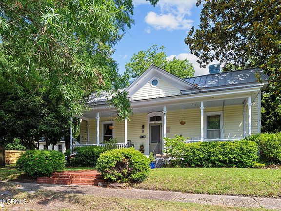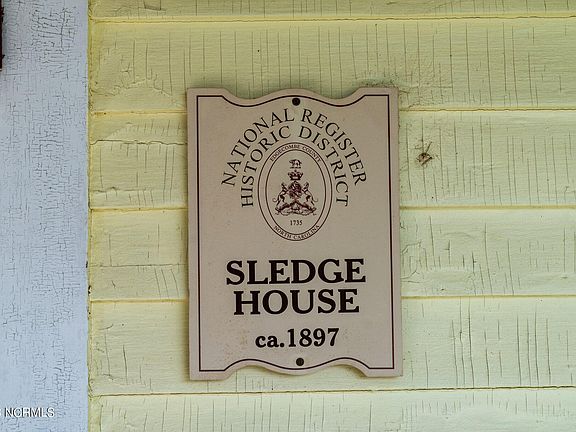 The Sledge House circa 1897, is listed on the National Register of Historic places. Located in beautiful Tarboro NC, this charming Victorian Cottage retains much of the original craftsmanship. This quaint home is located in the very desirable Historic district in Tarboro. The relaxing front porch transports you back to a bygone era of charm and hospitality with the smell of sweet magnolia, light breezes and ample shade. The cottage features 3 bedrooms, a formal living room, formal dining room, eat in kitchen, primary en suite and a total of 5 fireplaces. Original hardwood floors are found throughout with the exception of the bathrooms and kitchen. The formal dining room has a fireplace, soaring ceilings, and built in china cabinet. The original home had a semi-detached kitchen with the former breezeway now enclosed. Private parking is accessed via the old milk alley as well as on street parking. The backyard is a large, private oasis. As an extra bonus, there is a new roof over the entire structure. This home is in North Carolina's largest historic district where you can walk downtown for coffee, shopping, and dining. Tree lined streets are perfect for an evening stroll and a short 4 blocks away from the notable Town Common where you can enjoy the North Carolina Symphony and many other events throughout the year.