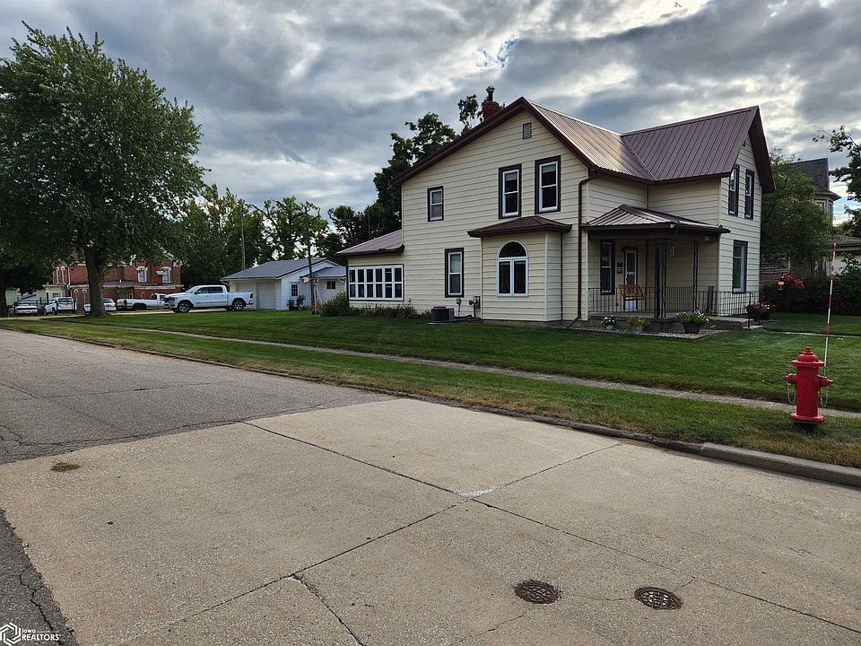 A rented propane tank is located on the backside of the garage. It is used for heating the gas furnace to the workshop in the detached garage.