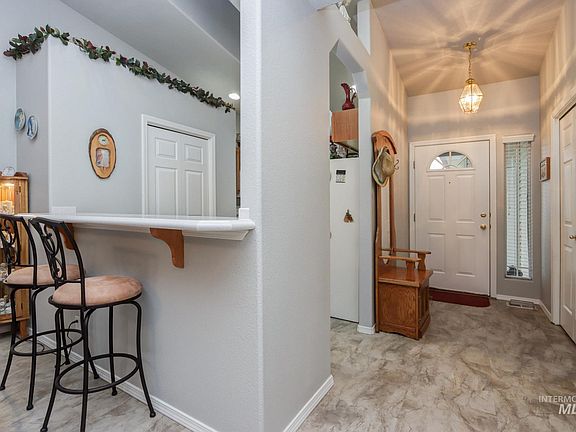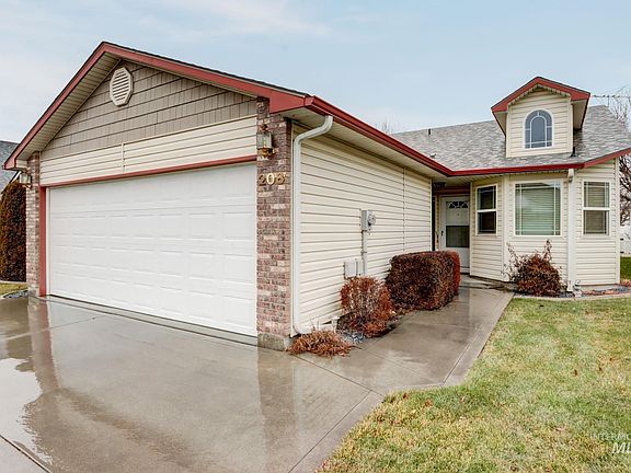 OPEN HOUSE Sat 1-28 from 12-3. Welcome Home to this 55+ Community ! This charming 2 bed, 2 1/2 bath home is located in a terrific area of Meridian - close to parks, shopping, restaurants and medical facilities. Kitchen is bright with a skylight bringing even more light to this adorable home. Includes: refrigerator, stove, microwave, pantry, breakfast bar, washer & dryer. Newer hard surface flooring in living & kitchen area. Carpet in bedrooms. Vaulted ceilngs bring a open and spacious atmosphere. Living Rm w/cozy gas fireplace. Master bedroom suite with walk-in closet. Two nice sized bedrooms and 2 1/2 baths. An added benefit is the Sunroom with lots of windows and a sliding glass door to the backyard with a small fenced-in yard with vinyl fencing. Low maintenance living. This Community has a great club house for activities, game nights, gatherings and a small library. HOA maintains the yard mowing.