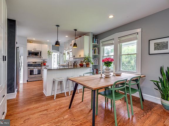 This Audubon bungalow combines timeless charm with modern comfort, creating an unparalleled living experience that's ready to welcome you home. As you step inside, you'll be captivated by the open floor plan, accentuated by stunning hardwood floors that flow seamlessly throughout the main floor. The heart of the home is the kitchen and dining room and this home does not disappoint. The kitchen was beautifully updated with practical functionality and hospitality in mind, blending modern conveniences with the charm of home. The crisp white cabinets are accented with quartz countertops, slow-close cabinets, smudge-proof stainless steel appliances. Open to the dining room, this gathering place lends to quiet meals at home, homework after school with warm cookies, or sharing a meal with friends and loved ones. The recessed lighting through the living room, dining room and kitchen area creates an ambiance of warmth with that modern touch. The master bedroom is a haven of tranquility, offering ample space to unwind and relax. The custom closet ensures that all your personal belongings have a dedicated space, keeping the room clutter free. There are two other bedrooms on the main level, one of which presently makes for a quiet home office space. The bathroom has also been completely updated, crisp and bright with gorgeous green tile, double-sink vanity, and heated floors which are simply exquisite on cold winter days! Venture downstairs to discover a partially finished basement. The family room invites days filled with playtime or crafting and cozy movie nights by the fire. Storage is a non-issue with a dedicated storage room and convenient laundry space. Elevate your living space by considering the untapped potential of the floored, walk-up attic. With a little imagination, it could transform into an expansive living area. Not to be overlooked is the outdoor living space of this home. The sun room is a gateway to outdoor bliss, opening up to a deck, patio, and a fenced rear yard that's simply perfect as a quiet haven to toss the ball around, chase the dog, or host family and friends. As you soak in the beauty of the generous yard, you'll be surrounded by an array of mature shrubs, trees and flowering plants. You will want to sit and stay a while when touring this home, so don't miss the chance to make this remarkable home your own!
