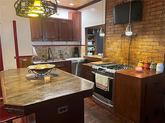 Nestled in a peaceful, tree lined neighborhood in Connellsville, this 4 bedroom 2 bath is a sophisticated gem! The living space is bright and inviting, with vaulted ceilings, rich hardwood flooring, and fresh decor throughout! With many updates, this home has a gas log fireplace in the living room, formal dining room and a charming kitchen outfitted with stainless appliance package, dining island and pantry! The master bedroom is freshly updated and both baths with upgraded fixtures are super nice! Main level laundry includes the washer/dryer. Clean basement ideal for extra storage space! Step outdoors and enjoy the front and rear covered porches with porch swing along with a fenced backyard, ready for you to to relax in the hot tub! Detached garage is wired for an EV, too! Welcome Home to this move right in ready beauty!