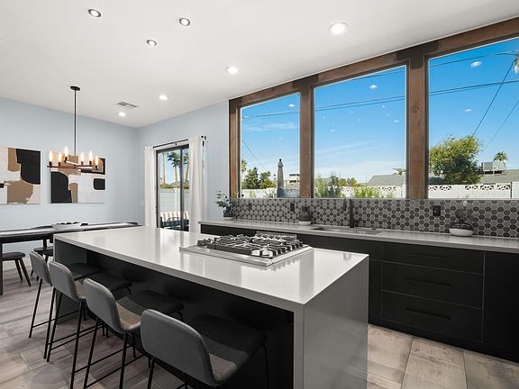 Beautiful Contemporary home, MODERN DESIGN from top to bottom! **NO HOA FULLY FURNISHED W/ POOL & SPA** New Pool & All new pool equipment! Aluminum roof, Greeted with Composite wood slats, modern doors, large format tiles, hex backsplash that goes to the moon! Quartz like concrete. ''Gatsby on Griswold,'' offers interior/exterior dining! Beautiful island, fully updated kitchen! Beverage fridge! Gas Stove! The Aluminum roof design is carried over to accent the wall to the very private side yard to make for a very MODERN OUTDOOR DINING or Patio!Located in North Central Phoenix in HIGHLY SOUGHT AFTER ''BETWEEN THE 7's'' This home has a stunning wow factor to it, come see us today!