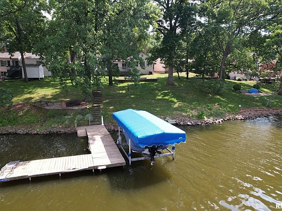 Just in time for summer! Lake living at an affordable price! Huge kitchen/dining area with a wall of windows overlooking the lake! Stone fireplace in family room. Private separate master bedroom with view of lake. Brand new gorgeous master bath! Walk in closet. Other recent updates include Anderson windows (2021); waterproofed basement (2021), HVAC (2 systems in 2022), Electric boat lift (2021) Preinspected by BSafe. Sold as reported.
