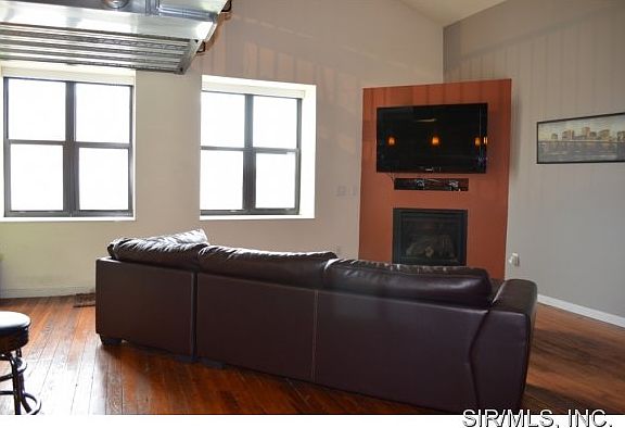 Call Super Agent Cari Brunner at 618-830-8622 to set up a showing! Perfect property for those looking for a home near the hustle and bustle of downtown Belleville! This condo features beautiful granite countertops, original hardwood floors, and immaculate stainless steel appliances. The living room houses a vintage-looking circular staircase, and the modern appearance with a flat screen tv (that stays!) and fireplace. All of the furniture in the master bedroom stays, along with the office furniture on the main floor. Convenient washer and dryer on the main floor, fenced in storage area in the basement, parking spot in back of the building, and great Main Street views!! Enjoy the convenience of dining and night life within walking distance. Don't wait to check out this fully-loaded home! ALSO FOR RENT.