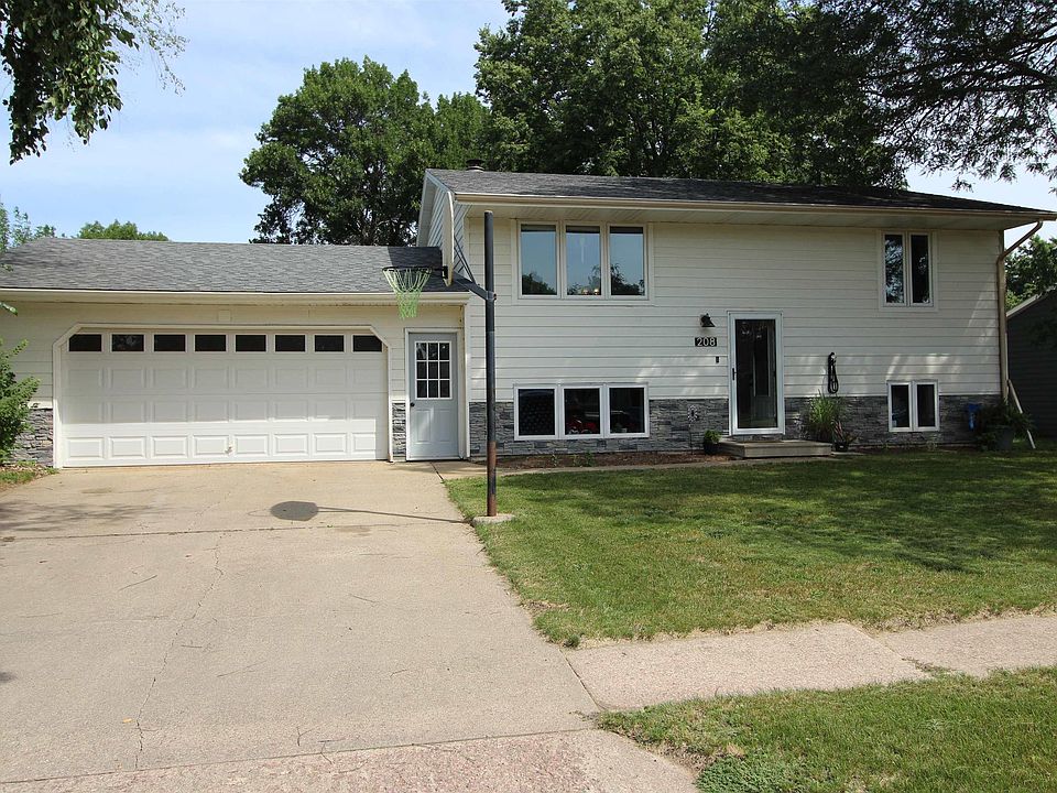**SOLD BEFORE PRINT** Seller is Licensed Real Estate Agent in SD. Welcome to this charming split-foyer home offering a blend of comfort, functionality, and inviting spaces. The exterior features siding with stone accents, mature trees, and a spacious front yard, complemented by an attached two-stall garage and a wide driveway for additional parking. Inside, the main floor boasts an open-concept layout where the kitchen, dining, and living areas flow together seamlessly. The kitchen features white cabinetry, a tile backsplash, and ample counter space, with a dining area that opens through sliding glass doors to a large deck—perfect for entertaining or enjoying the backyard views. The bright living room welcomes natural light through large windows, creating a warm and relaxing atmosphere. The main floor includes the master bedroom and a second bedroom, along with a full bathroom. The lower level offers garden-level windows, two additional bedrooms, a second full bathroom, and extra living space that can be tailored to your needs. Outside, the backyard provides shade and privacy with mature trees and well-kept landscaping, plus a storage shed for tools and seasonal items. This home combines indoor comfort with an inviting outdoor retreat—ready for you to move in and make it your own!