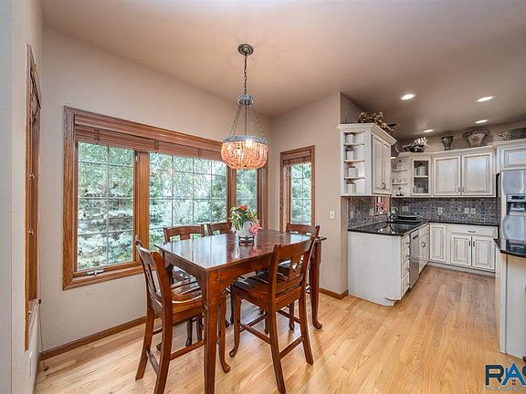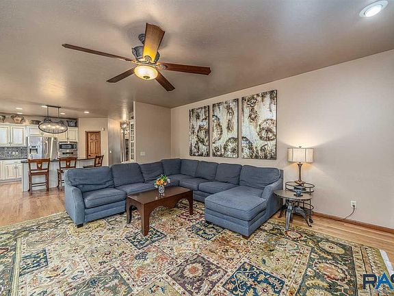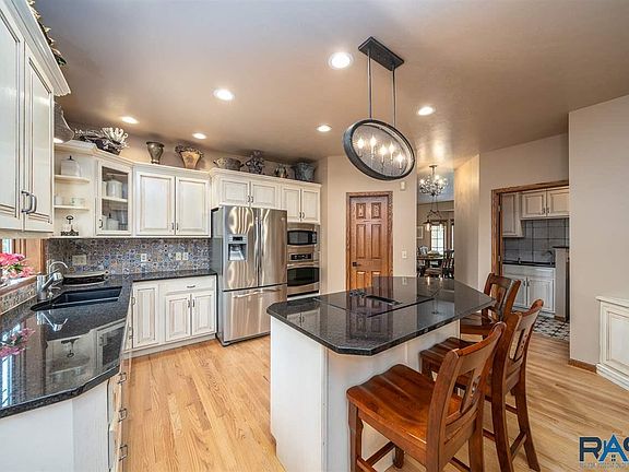 STUNNING, ranch walk-out home with 5 beds, 3 baths, an oversized 3 stall garage, and with over 2,450 sqft. on main level alone! Interior Designer inspired renovations with high-end finishes, genuine updates, granite countertops throughout and hardwood floors are endless here. Open concept living with a gorgeous dine-in kitchen, painted cabinets, SS appliances, walk-in pantry & an island bridges a huge living room with a stunning, floor to ceiling fireplace. Main level host 3 beds, an impressive Owner's bedroom with an en-suite bathroom w/ duel vanities, in-floor heat, walk-in tile shower, whirlpool tub and a huge walk-in closet, plus a 2nd closet! Lower level includes 2 more huge bedrooms, full bathroom with duel vanities, wet bar w/ in-floor heat, gaming room with a fireplace and a theater room with surround sound! Private backyard has a paver patio, fence and composite deck. Seller is the Listing Realtor licensed in SD.