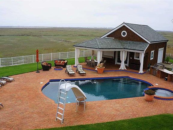 Among Linwood's most SPECTACULAR settings ever offered for sale. Custom built on Waterfront Peninsula with 360 views! One of a kind palatial waterfront estate with design, floor plan, and finishes meeting most demanding tastes. Pool house/Cabana with kitchen, bar, bath, basement and dock to bay tributary. 3rd floor in house equals enormous "above-ground basement." This fine home exceeds all expectations and may never again be duplicated.
