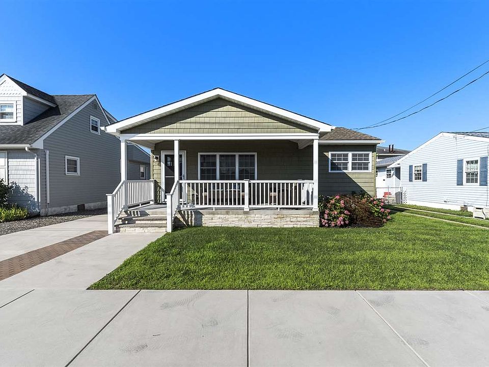 Looking for a cottage by the sea that is move in ready and absolutely adorable? This home is located on a quiet, wide residential street just two short blocks to the beach. Current owners have lovingly remodeled this home and now it's time for a new family. Ocean views can be had from the cozy covered front porch. The interior of the home has a beach cottage feel with a bit of DooWop mixed in. Smartly furnished and decorated to make use of all the space. This home is being conveyed turn key and move in ready. There is parking for two cars on the new concrete driveway. The rear yard is sizable and has a patio for outdoor dining. The exterior shower enclosure has a nice changing area to allow for easy clean ups after a day at the beach. The shed is a great place for the beach chairs, bikes, etc.. A list of improvements is provided and includes exterior improvements such as a new roof, siding, gutters, windows, doors, front porch, sod and irrigation, new gas and waterlines just to name a few. Interior improvements include things such as new central air, furnace, hot water heater, 200 AMP electrical service, refinished floors and doors and appliances. The improvements are extensive and worthy of careful review. Be sure to view the virtual tours of the home!!