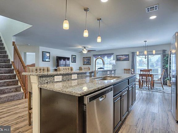 Welcome to Windy Heights in Dillsburg. This home has a spectacular open floor plan. This home was built on a premium lot and has great mountain views. There is an extended roof over the front porch to sit and enjoy your morning coffee. There is a total of four bedrooms and three and one-half bathrooms. The laundry room is located on the main level for your convenience. This model offers a master bedroom and bathroom on the first floor with another master bedroom and bathroom on the second floor. The kitchen is gorgeous with a high-top bar that opens to an eating area and the living room. Upgraded countertops, five burner gas range, and a pantry to fit everything. The garage area is also extended for additional room and there is a basement with walk-up outside access to bilco doors.