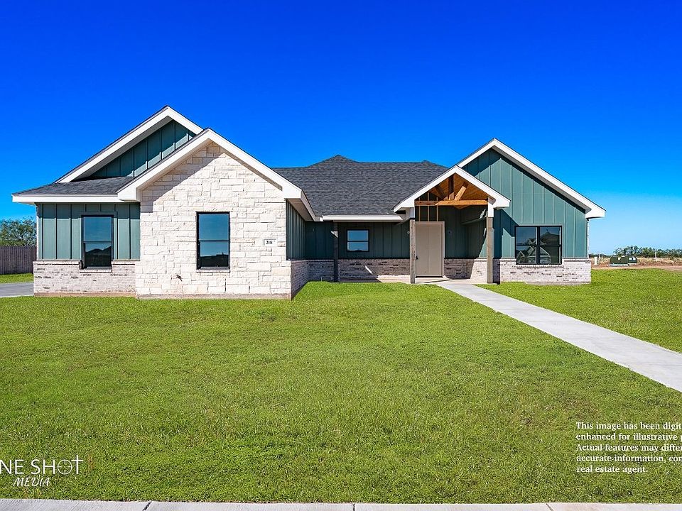 Welcome to your new construction, quality built CM Custom Home. This home sits on just over half an acre with sod, sprinkler and landscaping in the front yard. The interior features luxury vinyl flooring throughout, stained beams in the living room and a butcher block island in the kitchen. The primary suite is spacious and has a separate soaking tub, fully tiled shower, extended vanity with plenty of storage and oversized closet that connects to the laundry room. Off of the kitchen there is a walk in pantry featuring a built in wine rack and glass storage along with a mud bench. Enjoy your morning coffee or evening beverage on the private, extended back porch.