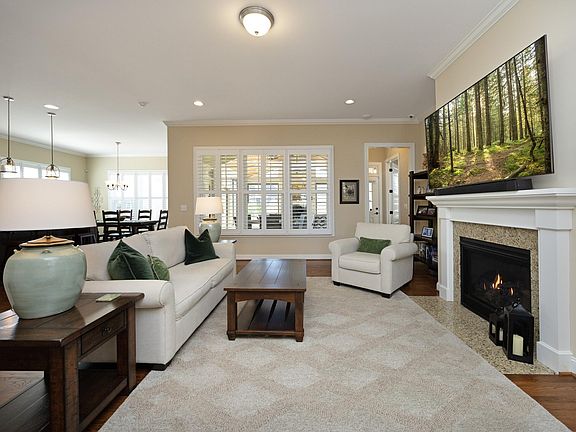Welcome to this beautiful, well-maintained home located on a .37-acre lot at the end of a peaceful cul-de-sac. Featuring 10 ft ceilings and an open, flowing plan, this home offers main floor living with a spacious primary suite, plus two additional bedrooms and second full bath. Upstairs, you'll find a large bonus room with a built-in Murphy bed, offering flexible space for guests or additional living needs, along with a 4th bedroom and a 3rd full bath.   The spacious all-season porch features a stunning gas-burning fireplace. This is the spot you'll want to cozy up for morning coffee or unwind in the evening. There's also a lovely patio for additional outdoor enjoyment.  The home boasts loads of storage, an encapsulated crawl space, and abundant upgrades: wireless ethernet access points throughout the home, alarm system with cameras, shelving and utility sink in garage, and more!  It is ideally located in the sought-after Woodhall neighborhood, just minutes from RTP, offering easy access to work, shopping, & dining, and travel is a breeze from RDU. Don't miss the opportunity to make this beautiful property your new home!