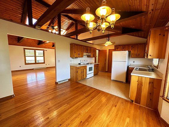 Wow, what a setting. Ever wanted to live on a farm but not interested in...all of that hard work?! Well here's your chance. Your neighbors will largely be of the bovine variety at this location but fear not, you will not be required to milk any of them! This single story floor plan has some lovely custom features like the vaulted, wood finished ceiling with skylights. Like the lovely exposed beams. The front of the home opens to the living room which is quite large and bright with natural light from the skylights and offers lovely original hardwood floors and ceiling fan as well as brick hearth fireplace. Living room walks into dining area off kitchen with bay window overlooking large back deck and lovely agricultural scenery as far as you can see. Kitchen is equipped with original cabinets and provided fridge, dishwasher and stove. Small hallway off kitchen offers pantry shelving and laundry closet with washer and dryer provided. Head down the hallway to the right and you'll find a full bathroom with step in shower surround, vanity with storage and medicine cabinet. Continue and you'll find the sleeping quarters, including two spacious secondary bedrooms and one master with attached bath featuring full size tub/shower surround and walk-in closet. All bedrooms offer full size closets and ceiling fans. Enclosed breezeway off dining area makes for a sunroom setting between house and two car attached garage. Garage offers room to park two vehicles as well as shop/storage space. Home sits atop a full, unfinished, walkout basement ideal for storage. Home offers central propane heat and central air conditioning and offers a whole house generator so there's never concern of being without power or heat! Home is on well and septic so no water/sewer bills. Tenant pays their own oil, propane, and electric at this location and is responsible for filters for the water system as well as trash removal if they want pick up. Use of landfill is free for drop off refuse. Hot spot internet service only at this location but service is adequate for streaming and gaming through both Verizon hot spot or T-Moblie home internet. This home is in a country setting, so if bugs or a mouse or two aren't welcome housemates this one probably isn't for you. This property is strictly non-smoking and no pets. But if you enjoy the tranquility of open pasture but also appreciate being only 10 minutes from town...well this makes for a unique rental opportunity. Contact Property Management of Virginia with interest! 12 month