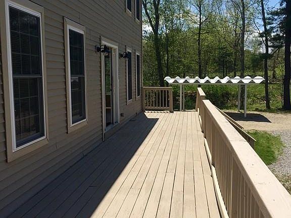 Reduced. Custom Colonial on 1.5+ acres offering tons of opportunities! Large open front farmers porch extending the full length of the house. First floor features center hall with open oak tread staircase. True open floor plan encompassing the living room, dining room and kitchen. All appliances stay! Living room has a unique elevated gas fireplace. A full bathroom off the kitchen completes the first floor. The second floor features a master suite including a full bath with double sinks, large jetted bathtub and walk-in closet with custom wire shelving. An additional full bath with two pedestal sinks is included on the second floor. The finished lower level living area offers a bright sunny area with a full walkout, full size windows and full bath! The potential is endless! Ideal for an office, second family room, playroom, studio or in-law apartment potential. Unfinished third level has potential for 2 additional rooms with a high pitch roof line and two full-size window dormers.