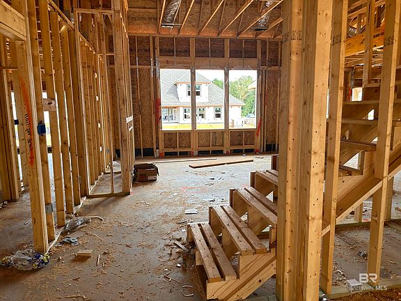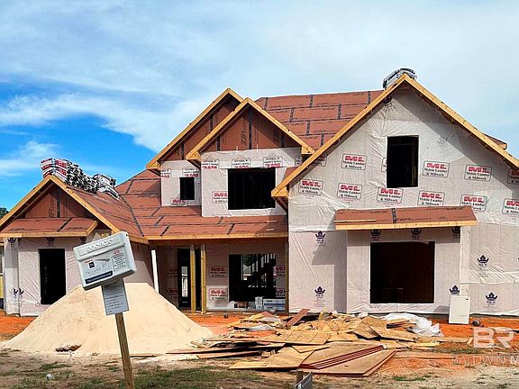 Currently under construction, in the beautiful Fox Hollow Subdivision. This neighborhood has mature trees and is nestled just minutes away from all the conveniences that Fairhope has to offer. The Eagle C with an all Board and Batten exterior is constructed with a wide assortment of upgrades and luxuries. With five bedrooms and four full bathrooms, it is a rare find among new construction plans. Built to be spacious and accommodating by offering grand communal areas as well as large bedrooms with private baths. The kitchen is stunning, with Calacatta Vincenzia quartz countertops and painted white kitchen cabinets with a light French Gray painted island. Our split cooking option with a gas cooktop and a built-in wall oven and microwave is a fan favorite as it presents a cleaner, more luxurious look. The sink will be a white, farm sink with clean lines and a custom tile backsplash. Hardwood floors will run seamlessly throughout the home in the kitchen, family room, dining area and primary bedroom. The primary bedroom is well lit by natural light and features a trey ceiling. Attached is the primary bathroom with a soaking tub, large walk-in shower with frameless glass, and double vanities. It will come with up to a 5-zone irrigation system. The Smart Homes package includes wifi smart light switches for the kitchen, living area, and carriage lights on the garage, RING® doorbell, outdoor camera, hub, and smart thermostat. These homes are built at the Gold Fortified Level and the home includes a full 1-year builder and 10-year structural warranty. This home is estimated to be completed in Nov/Dec of 2023. Fox Hollow is a Fairhope Single Tax property. Call to see this home, today! All measurements are approximate and not guaranteed, buyer to verify. Floor plans and elevation are for example and subject to lot and neighborhood specifics. ASK about our interest rate options and closing cost of $3,000 when using our preferred lender.