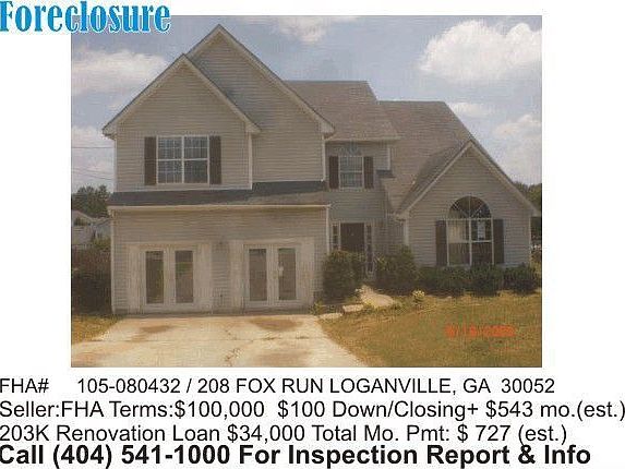 208 Fox Run, Loganville - Upstairs Laundry, Separate Living, Dining and Family Rooms. 4BR/2.5BA $100,000