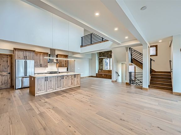 Beautiful Luxury Townhome with Incredible 360 Mountain Views! NEW CONSTRUCTION IN FRISCO IN QUIET NEIGHBORHOOD ONE BLOCK OFF MAIN STREET! Complete May 2024. Mountain modern finishes. Home features quartz counter tops, two stone fireplaces, wood floors throughout, 3 decks, one structurally supportive for a hot tub, huge main floor deck and roof top deck for entertaining guests. Large open great room with gas fireplace, accent stone wall in dining are, spacious pantry, 1/2 bath, and main level primary bedroom and bath. 2nd family room/flex space on entry level. All bedrooms en-suite. Main floor office or 4th bedroom with beautiful barn door and fan. 2nd Primary bedroom on its own private floor with gas fireplace. Bar area with beverage refrigerator near hot tub deck. Huge living space with double level vaulted ceilings with open catwalk exposed railings above! Viking appliances. Oversized two car garage with an additional carport for two more cars. Power in garage ready for electric car charger. Panoramic views of Mt. Royal, Peak One, Buffalo Mt, and Continental Divide. Centrally located in the charming town of Frisco Colorado surrounded by 5 world class ski areas, only minutes away. Free bus to ski in the winter, and bike and hike during the summer. Numerous hiking trails and bike paths right out your door. Walking distance to Frisco Marina on Lake Dillon for all your water actives, paddle boarding, canoeing, kayaking, sailing, and fishing. Main Street one block away to enjoy all the restaurants, shops and festivals. Just minutes away from Ten Mile Creek, Walter Byron and Historic Park. ONE OF THE BEST LOCATIONS IN FRISCO! HERs Home Energy Ratings, ZERH Zero Energy Ready Homes. 1 year builder's warranty. 1 1/2 hours to DIA Airport and Eagle Airport. Estimated completion May 2024. Floor plans available in attachments. LOW HOA DUES include exterior maintenance, siding, roof, snow plowing, shoveling to your door & landscape. Seller will consider contingent offers.
